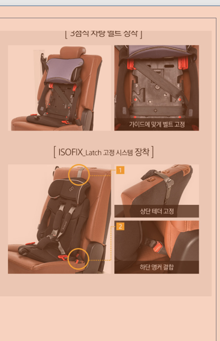 특징:ISOFIX 카시트, 유아용은 불편하고 아직 주니어카시트 이용 하기에는 차량용 벨트를 사용하기 힘든우리아이